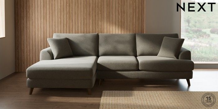 7.2.10 Parker Large Sofa Chaise - Left Hand Chunky Marl Light Olive Green Low Retro Tapered - Mid | Made Click here to use our website with more accessibility support, for example screen readers