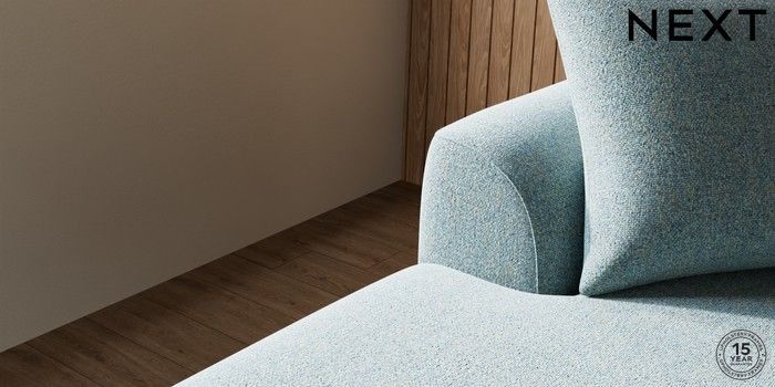 7.2.10 Parker Large Sofa Chaise - Left Hand Chunky Marl Mid Blue High Metal - Brass | Made Click here to use our website with more accessibility support, for example screen readers