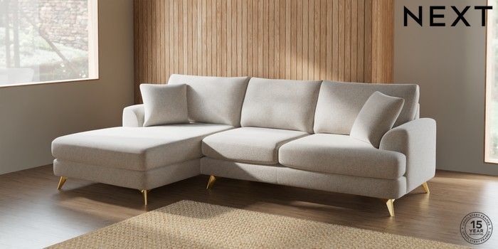 7.2.10 Parker Large Sofa Chaise - Left Hand Chunky Marl Oyster High Metal - Brass | Made Click here to use our website with more accessibility support, for example screen readers