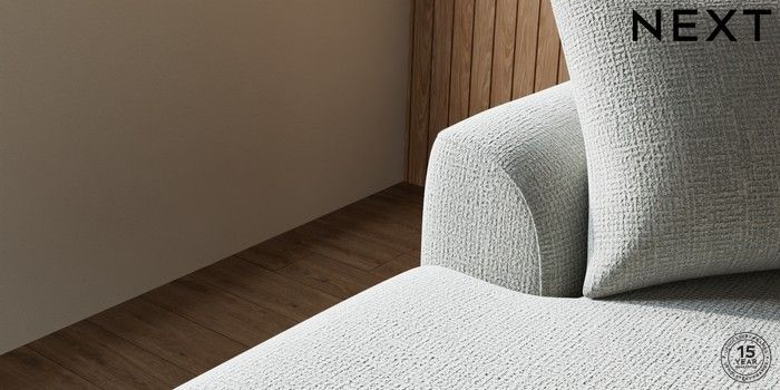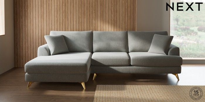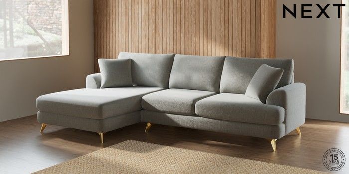 7.2.10 Parker Large Sofa Chaise - Left Hand Chunky Texture Dove High Metal - Brass | Made Click here to use our website with more accessibility support, for example screen readers