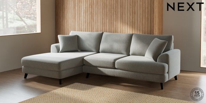 7.2.10 Parker Large Sofa Chaise - Left Hand Chunky Texture Dove Low Retro Tapered - Dark | Made Click here to use our website with more accessibility support, for example screen readers