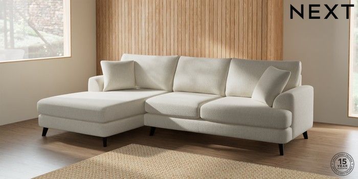 7.2.10 Parker Large Sofa Chaise - Left Hand Chunky Texture Oyster Low Retro Tapered - Dark | Made Click here to use our website with more accessibility support, for example screen readers