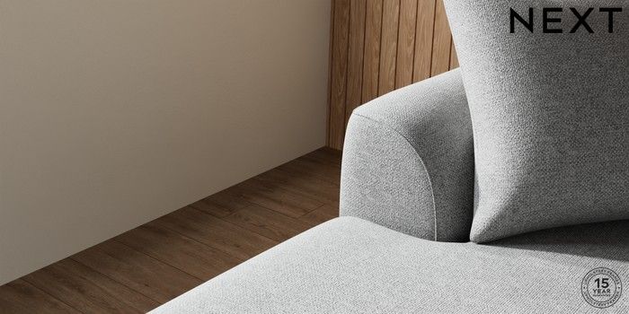 7.2.10 Parker Large Sofa Chaise - Left Hand Chunky Weave Mid Grey Low Retro Tapered - Mid | Made Click here to use our website with more accessibility support, for example screen readers