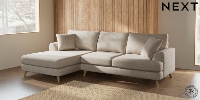 7.2.10 Parker Large Sofa Chaise - Left Hand Chunky Weave Mid Natural Low Retro Tapered - Light | Made Click here to use our website with more accessibility support, for example screen readers