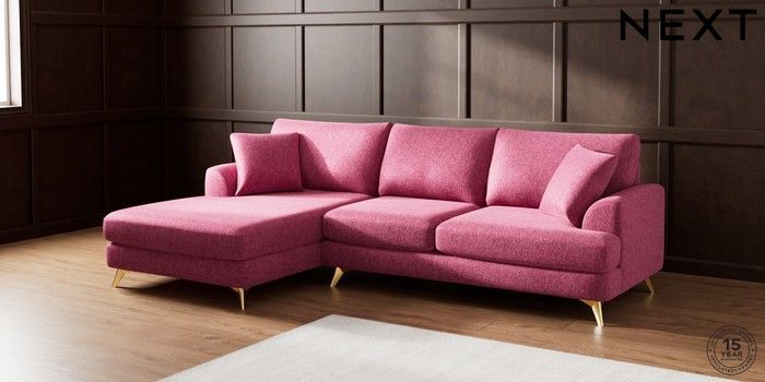 7.2.10 Parker Large Sofa Chaise - Left Hand Cotswold Chenille Dark Raspberry Pink High Metal - Brass | Made Click here to use our website with more accessibility support, for example screen readers