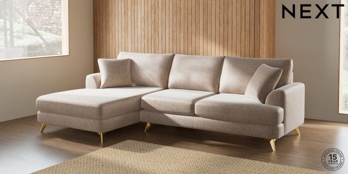 7.2.10 Parker Large Sofa Chaise - Left Hand Cotswold Chenille Light Natural High Metal - Brass | Made Click here to use our website with more accessibility support, for example screen readers