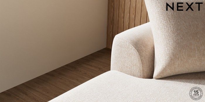 7.2.10 Parker Large Sofa Chaise - Left Hand Cotswold Chenille Light Natural Low Retro Tapered - Light | Made Click here to use our website with more accessibility support, for example screen readers