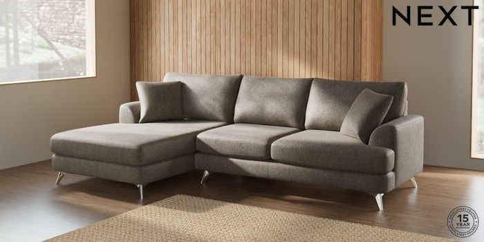 7.2.10 Parker Large Sofa Chaise - Left Hand Cotswold Chenille Mid Mink Brown High Metal - Chrome | Made Click here to use our website with more accessibility support, for example screen readers