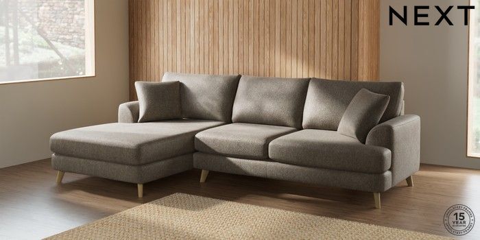 7.2.10 Parker Large Sofa Chaise - Left Hand Cotswold Chenille Mid Mink Brown Low Retro Tapered - Light | Made Click here to use our website with more accessibility support, for example screen readers