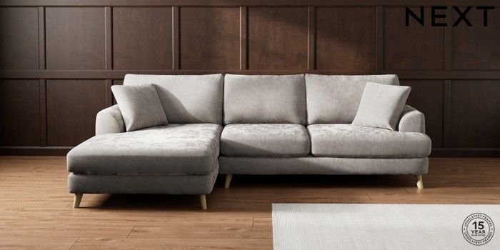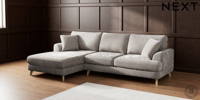 7.2.10 Parker Large Sofa Chaise - Left Hand Distressed Velour French Grey Low Retro Tapered - Light | Made Click here to use our website with more accessibility support, for example screen readers
