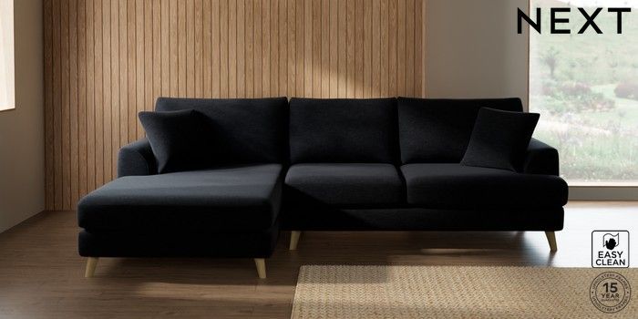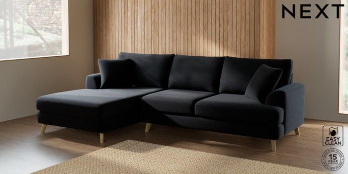 7.2.10 Parker Large Sofa Chaise - Left Hand Fine Chenille Easy Clean Black Low Retro Tapered - Light | Made Click here to use our website with more accessibility support, for example screen readers