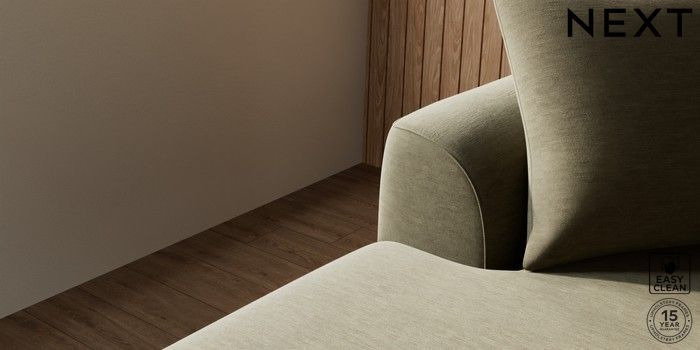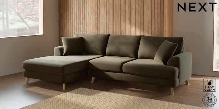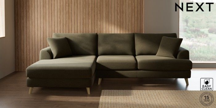 7.2.10 Parker Large Sofa Chaise - Left Hand Fine Chenille Easy Clean Dark Moss Green Low Retro Tapered - Light | Made Click here to use our website with more accessibility support, for example screen readers