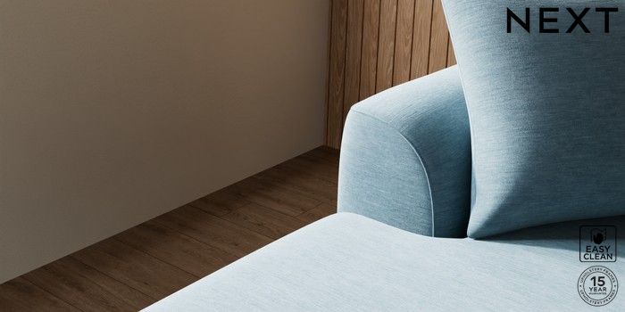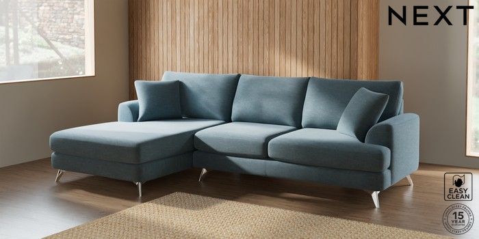 7.2.10 Parker Large Sofa Chaise - Left Hand Fine Chenille Easy Clean Mid Blue High Metal - Chrome | Made Click here to use our website with more accessibility support, for example screen readers