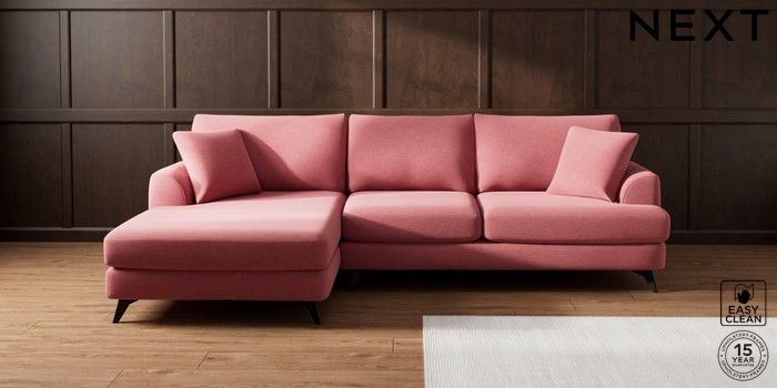 7.2.10 Parker Large Sofa Chaise - Left Hand Fine Chenille Easy Clean Mid Pink High Metal - Black | Made Click here to use our website with more accessibility support, for example screen readers