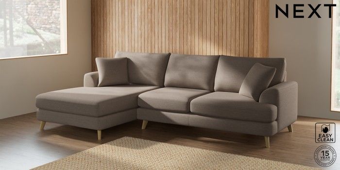 7.2.10 Parker Large Sofa Chaise - Left Hand Fine Chenille Easy Clean Mid Taupe Brown Low Retro Tapered - Light | Made Click here to use our website with more accessibility support, for example screen readers