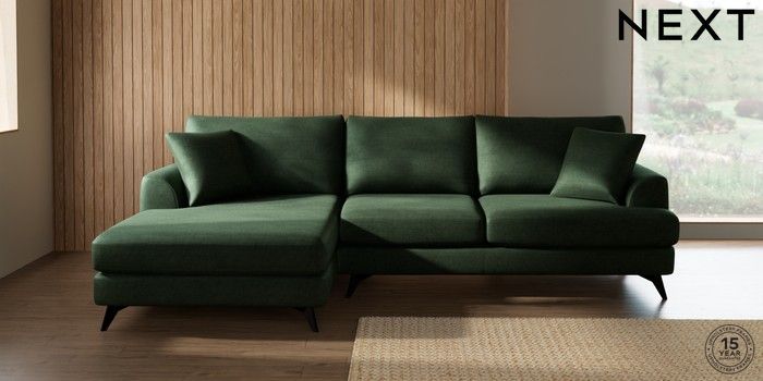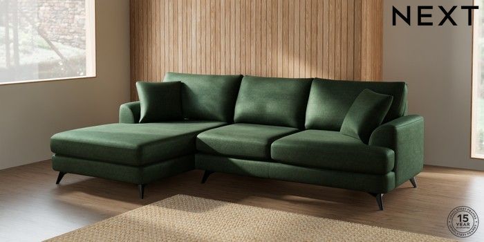 7.2.10 Parker Large Sofa Chaise - Left Hand Luxe Chenille Dark Green High Metal - Black | Made Click here to use our website with more accessibility support, for example screen readers