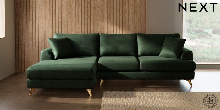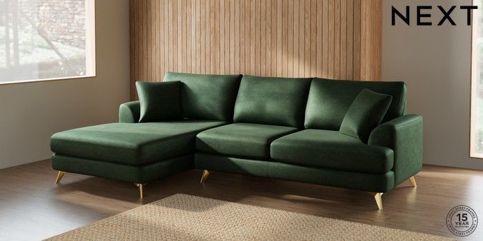 7.2.10 Parker Large Sofa Chaise - Left Hand Luxe Chenille Dark Green High Metal - Brass | Made Click here to use our website with more accessibility support, for example screen readers