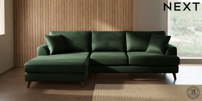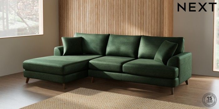 7.2.10 Parker Large Sofa Chaise - Left Hand Luxe Chenille Dark Green Low Retro Tapered - Mid | Made Click here to use our website with more accessibility support, for example screen readers