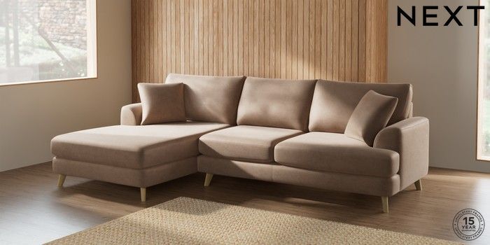 7.2.10 Parker Large Sofa Chaise - Left Hand Luxe Chenille Mid Natural Low Retro Tapered - Light | Made Click here to use our website with more accessibility support, for example screen readers
