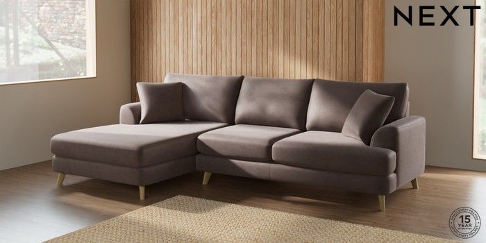 7.2.10 Parker Large Sofa Chaise - Left Hand Luxe Chenille Mink Brown Low Retro Tapered - Light | Made Click here to use our website with more accessibility support, for example screen readers