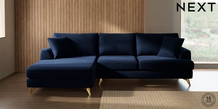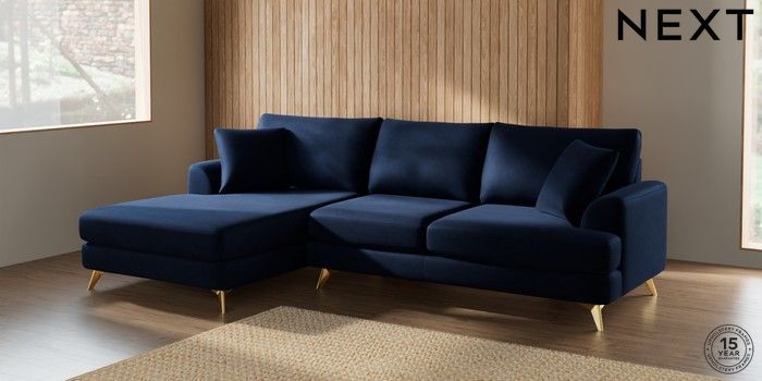 7.2.10 Parker Large Sofa Chaise - Left Hand Luxe Chenille Navy Blue High Metal - Brass | Made Click here to use our website with more accessibility support, for example screen readers