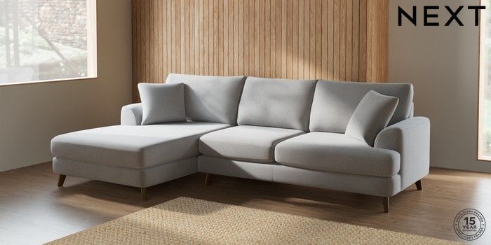 7.2.10 Parker Large Sofa Chaise - Left Hand Natural Mix Light Grey Low Retro Tapered - Mid | Made Click here to use our website with more accessibility support, for example screen readers