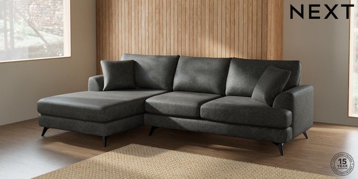 7.2.10 Parker Large Sofa Chaise - Left Hand Plush Chenille Dark Grey High Metal - Black | Made Click here to use our website with more accessibility support, for example screen readers