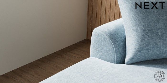 7.2.10 Parker Large Sofa Chaise - Left Hand Plush Chenille Light Blue Low Retro Tapered - Mid | Made Click here to use our website with more accessibility support, for example screen readers