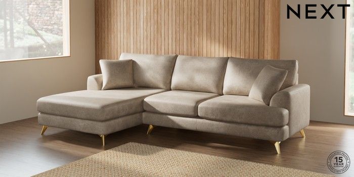 7.2.10 Parker Large Sofa Chaise - Left Hand Plush Chenille Light Natural High Metal - Brass | Made Click here to use our website with more accessibility support, for example screen readers