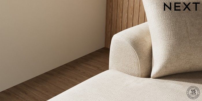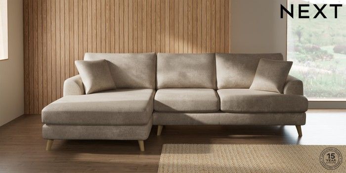 7.2.10 Parker Large Sofa Chaise - Left Hand Plush Chenille Light Natural Low Retro Tapered - Light | Made Click here to use our website with more accessibility support, for example screen readers