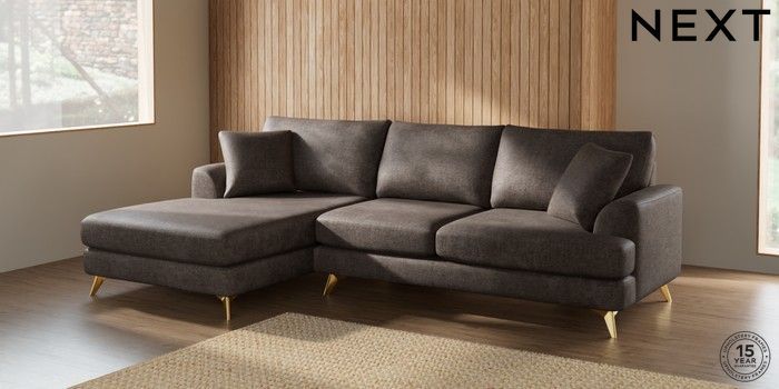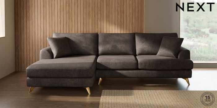 7.2.10 Parker Large Sofa Chaise - Left Hand Plush Chenille Mink Brown High Metal - Brass | Made Click here to use our website with more accessibility support, for example screen readers