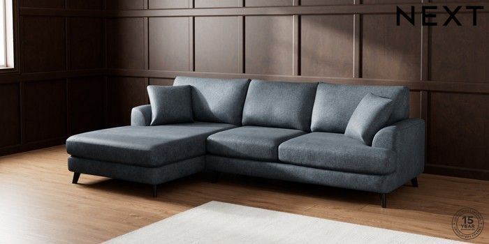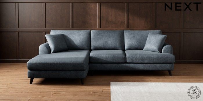 7.2.10 Parker Large Sofa Chaise - Left Hand Plush Chenille Slate Blue Low Retro Tapered - Dark | Made Click here to use our website with more accessibility support, for example screen readers