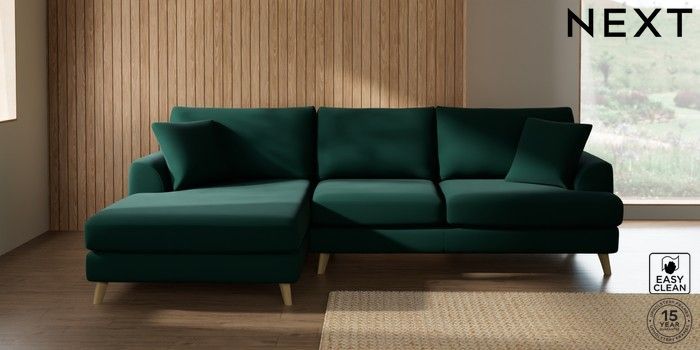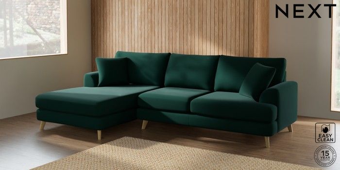 7.2.10 Parker Large Sofa Chaise - Left Hand Plush Velvet Easy Clean Bottle Green Low Retro Tapered - Light | Made Click here to use our website with more accessibility support, for example screen readers