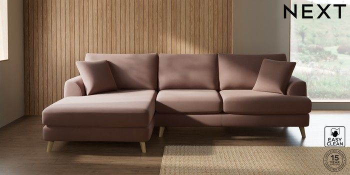 7.2.10 Parker Large Sofa Chaise - Left Hand Plush Velvet Easy Clean Mid Natural Low Retro Tapered - Light | Made Click here to use our website with more accessibility support, for example screen readers