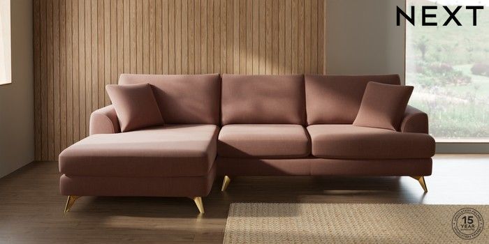 7.2.10 Parker Large Sofa Chaise - Left Hand Relaxed Linen Look Light Rust Brown High Metal - Brass | Made Click here to use our website with more accessibility support, for example screen readers