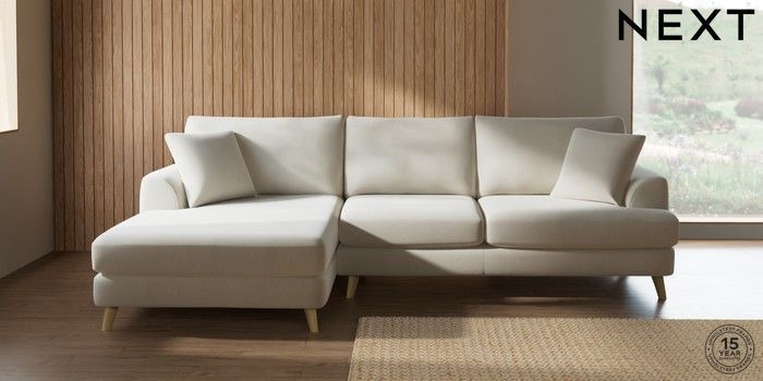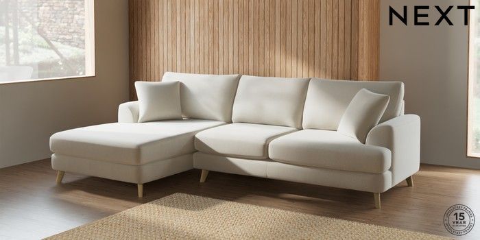 7.2.10 Parker Large Sofa Chaise - Left Hand Relaxed Linen Look Oyster Low Retro Tapered - Light | Made Click here to use our website with more accessibility support, for example screen readers