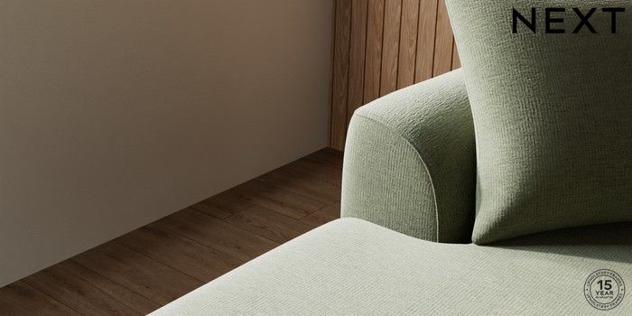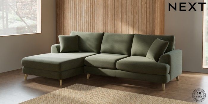 7.2.10 Parker Large Sofa Chaise - Left Hand Ripple Chenille Mid Moss Green Low Retro Tapered - Light | Made Click here to use our website with more accessibility support, for example screen readers