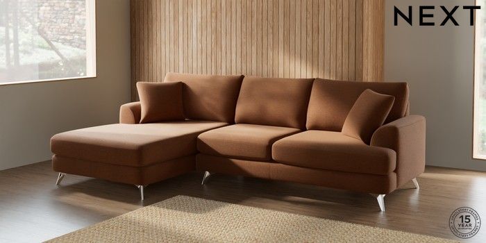 7.2.10 Parker Large Sofa Chaise - Left Hand Ripple Chenille Mid Rust Brown High Metal - Chrome | Made Click here to use our website with more accessibility support, for example screen readers