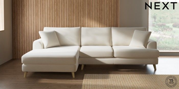 7.2.10 Parker Large Sofa Chaise - Left Hand Ripple Chenille Oyster Low Retro Tapered - Light | Made Click here to use our website with more accessibility support, for example screen readers