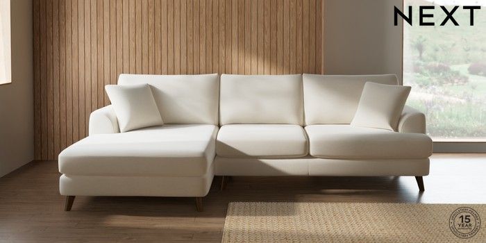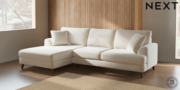 7.2.10 Parker Large Sofa Chaise - Left Hand Ripple Chenille Oyster Low Retro Tapered - Mid | Made Click here to use our website with more accessibility support, for example screen readers