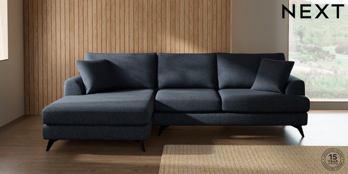 7.2.10 Parker Large Sofa Chaise - Left Hand Tweedy Chenille Navy Blue High Metal - Black | Made Click here to use our website with more accessibility support, for example screen readers