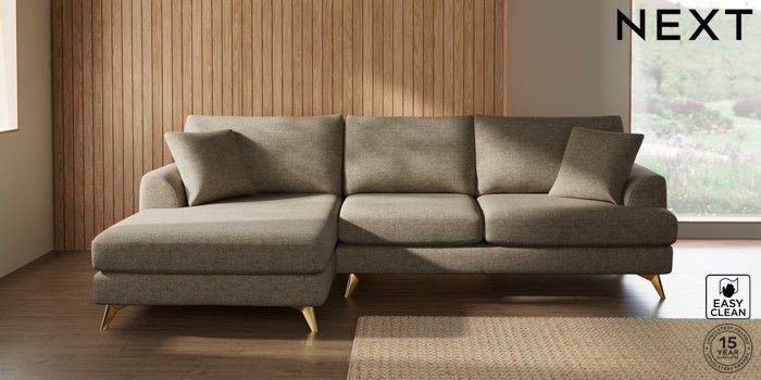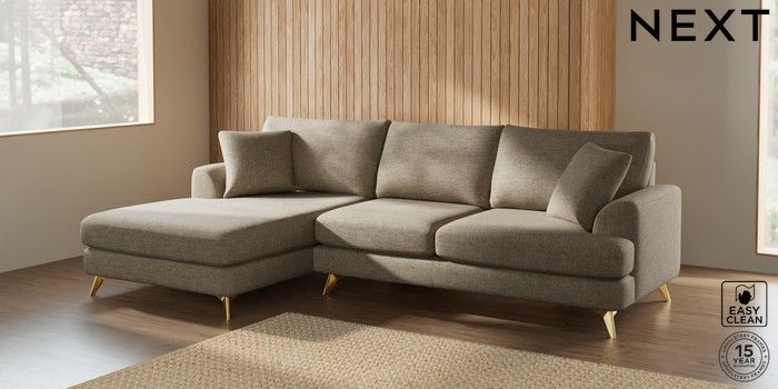 7.2.10 Parker Large Sofa Chaise - Left Hand Woven Chenille Easy Clean Mid Natural High Metal - Brass | Made Click here to use our website with more accessibility support, for example screen readers