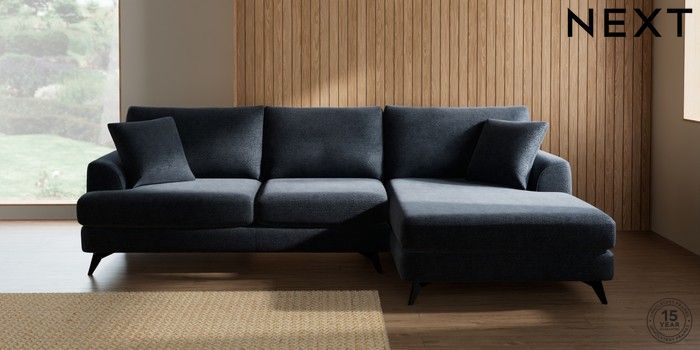 7.2.10 Parker Large Sofa Chaise - Right Hand Boucle Chenille Dark Slate Blue High Metal - Black | Made Click here to use our website with more accessibility support, for example screen readers