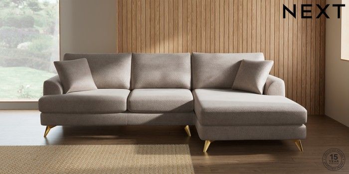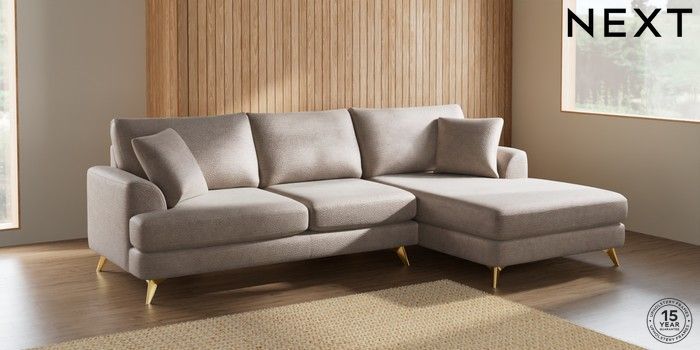 7.2.10 Parker Large Sofa Chaise - Right Hand Boucle Chenille Light Natural High Metal - Brass | Made Click here to use our website with more accessibility support, for example screen readers