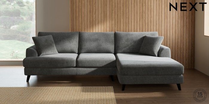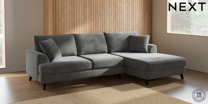 7.2.10 Parker Large Sofa Chaise - Right Hand Chunky Chenille Dark Grey Low Retro Tapered - Dark | Made Click here to use our website with more accessibility support, for example screen readers
