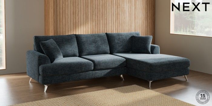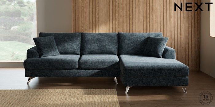 7.2.10 Parker Large Sofa Chaise - Right Hand Chunky Chenille Dark Navy Blue High Metal - Chrome | Made Click here to use our website with more accessibility support, for example screen readers