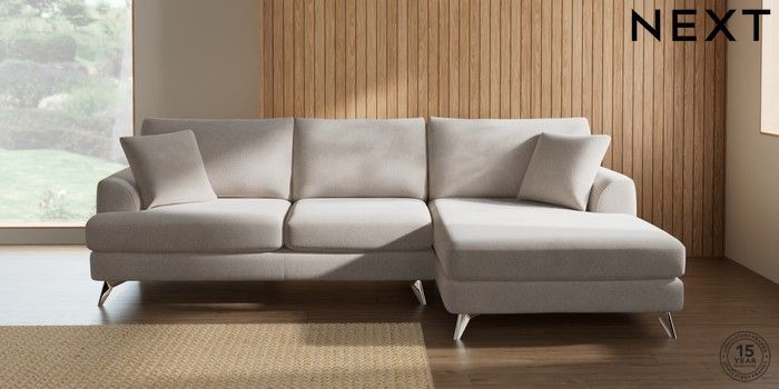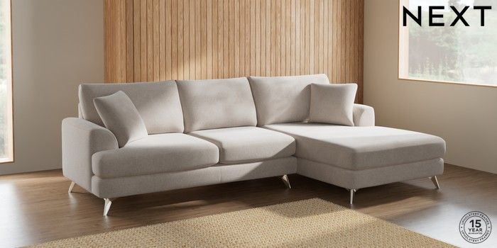 7.2.10 Parker Large Sofa Chaise - Right Hand Chunky Chenille Oyster High Metal - Chrome | Made Click here to use our website with more accessibility support, for example screen readers