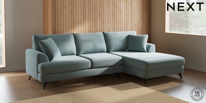 7.2.10 Parker Large Sofa Chaise - Right Hand Chunky Marl Mid Blue High Metal - Black | Made Click here to use our website with more accessibility support, for example screen readers