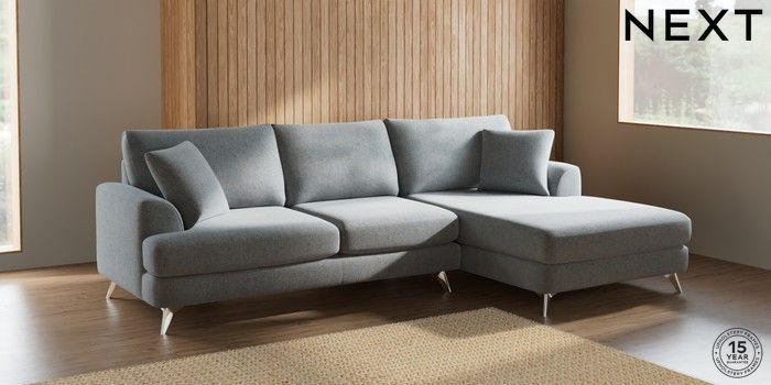 7.2.10 Parker Large Sofa Chaise - Right Hand Chunky Marl Mid Grey High Metal - Chrome | Made Click here to use our website with more accessibility support, for example screen readers
