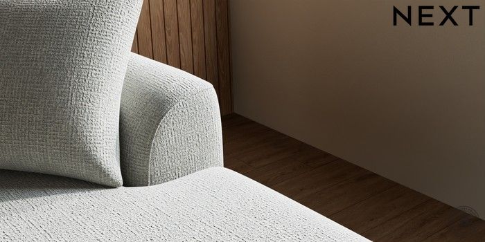 7.2.10 Parker Large Sofa Chaise - Right Hand Chunky Texture Dove Low Retro Tapered - Light | Made Click here to use our website with more accessibility support, for example screen readers